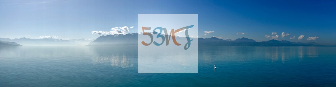 A panoramic Springtime twilight dawn at Lac Léman - Ouchy with a photo-bombing Swan in the foreground!
