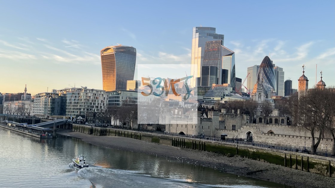 Springtime view over the Square Mile from Tower Bridge, City of London (UK).